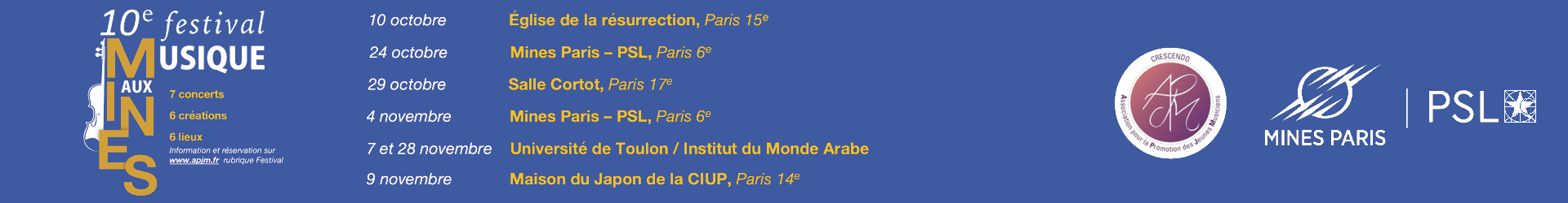 - Mardi 4 novembre : « Concert piano », Mines Paris, Paris 6ème, 19h00